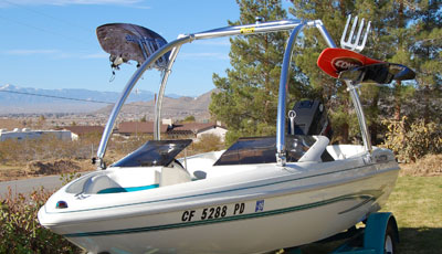 1995 Glastron 195 SX with a 220 hp 5.0 liter Merc. Tower installed by Fred's Marine. Thanks for a great Tower. It is everything you promised, strong, rattle free, easy to set up and down, and way good looking