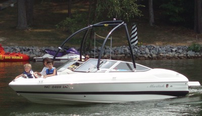 After much hesitation of drilling holes in my perfectly good 2006 Glastron SX 195... I finally did it and installed the tower. The racks are great for storage and the bimini top has been awesome for those hot afternoons when we're out all day!! Every time we take it out, asks me where I got the tower, how much it costs, and how I like it? I just say, “I'd buy another one in a second, check out www.monstertower.com”. Thanks for the great engineering and support. I can't wait to start wearing the shirt.