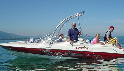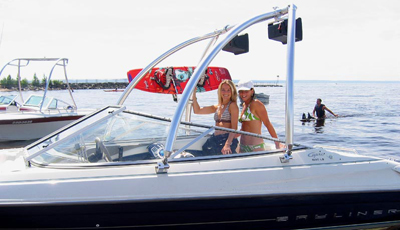 Thetower looks great and the boys are having fun! I’ve gotten several compliments on how great it looks on the boat. Now that’s saying something when you own a Bayliner! I want to thank your customer support during the install (Chris). Chris had good advice on how to make it look sharp on the boat! I spent extra time on the install trying to find a position that would allow me to keep my bimini top. The extra time was well worth the effort; my biminifits under the tower.