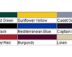 - Материал Sunbrella™ в различной цветовой гамме: Forest Green, Linen, Captain Navy, Mediterranean Blue, Burgundy, Jockey Red, Sunflower Yellow, Cadet Grey and Jet Black.